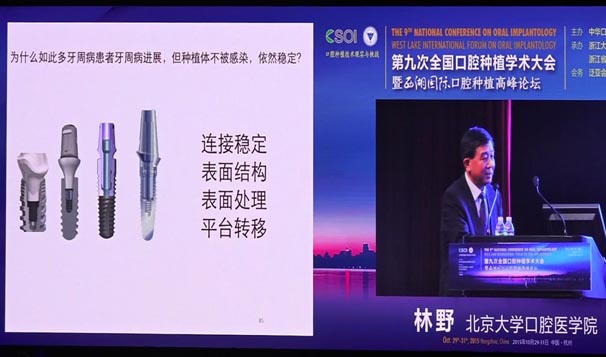 會議期間國內(nèi)知名口腔專家針對當前口腔種植領(lǐng)域熱點進行了精彩的學(xué)術(shù)演講。其中北京大學(xué)口腔醫(yī)學(xué)院林野教授的演講主題是“種植體設(shè)計及臨床意義”。